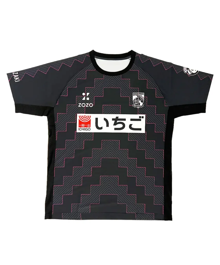 Home Kitと同じく、胸スポンサー「いちご」のロゴが配置されているが、黒地に白枠付きのロゴは、少し「浮いて」見える。