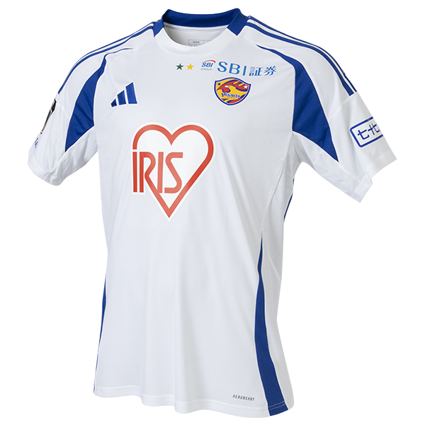 そして、毎度おなじみ、胸スポンサー「アイリスオーヤマ」様のハートマーク。白地に赤のハート、そして黒文字。このロゴ自体の視認性が高すぎるため、複雑な黄色の背景と喧嘩している。黄色(地)×赤(図)の組み合わせは、彩度が高すぎてハレーション(目がチカチカする現象)スレスレ。